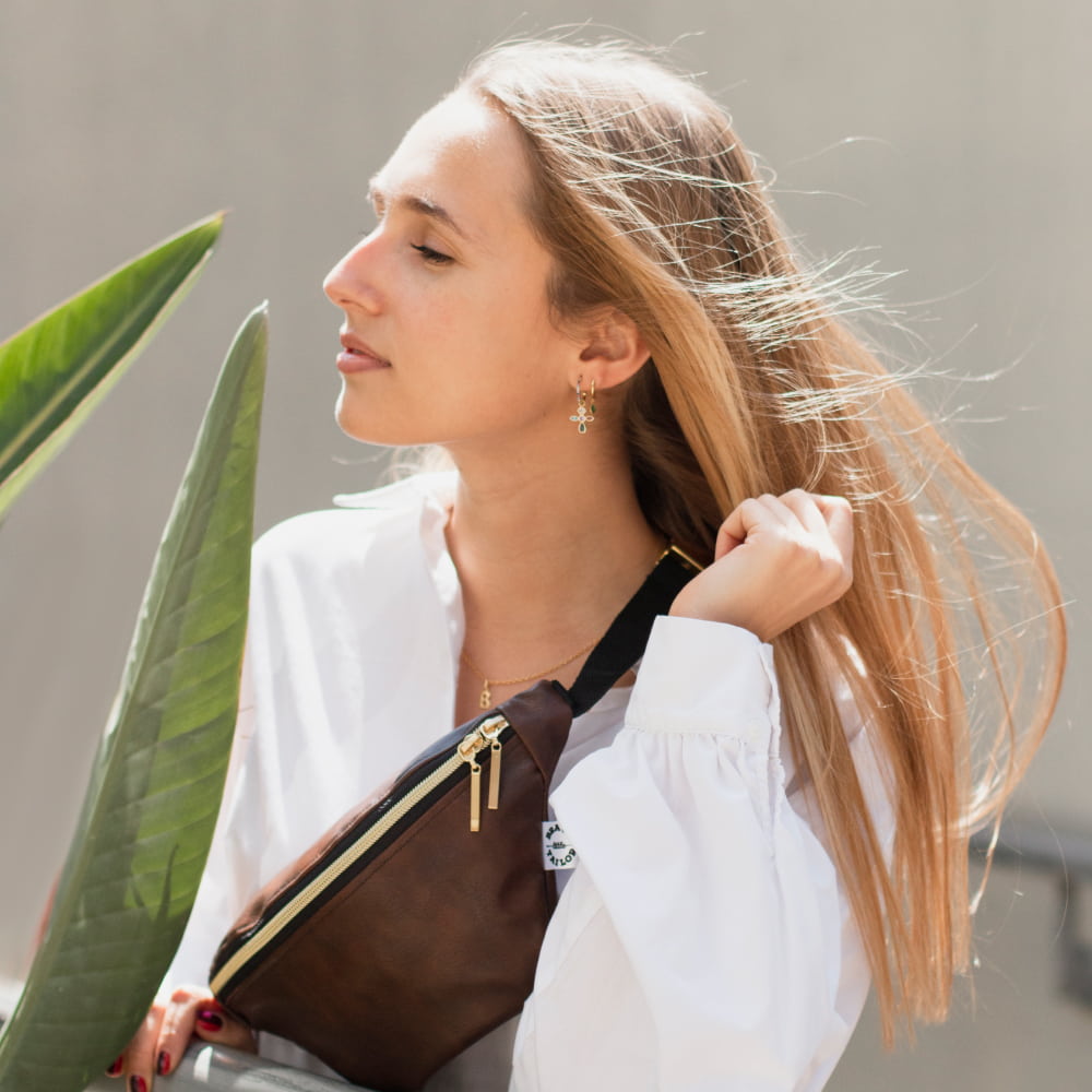 Kunstleder ist sehr feuchtigkeitsresistent, du kannst mit deiner Bauchtsche also auch sorgenfrei durch den Regen laufen ☔️